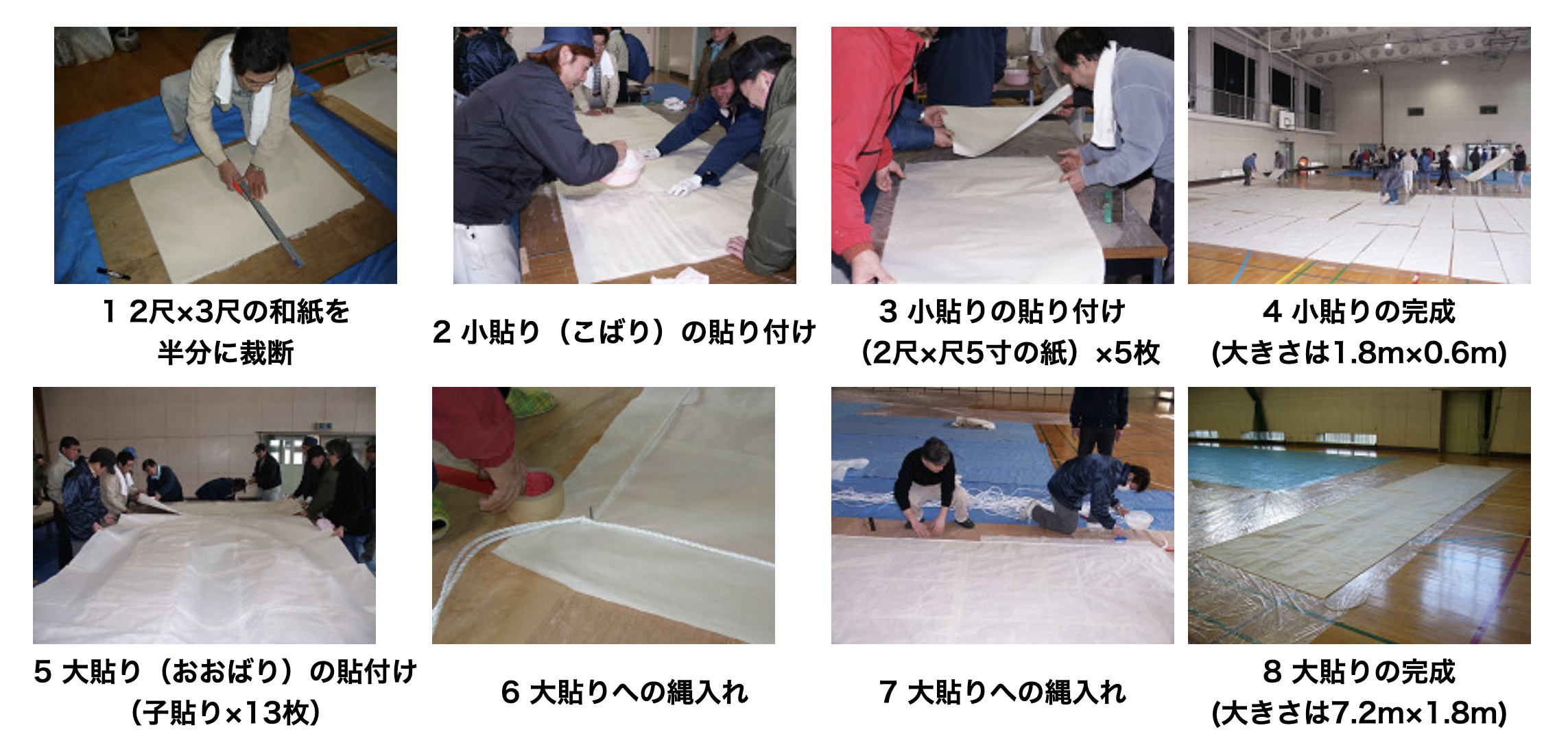 8間凧は、大貼りが右側8枚、左側8枚、計16枚必要です。