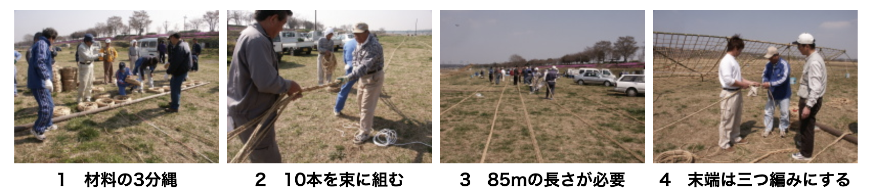藁の3分縄を10本組んで85mの尾を作ります。